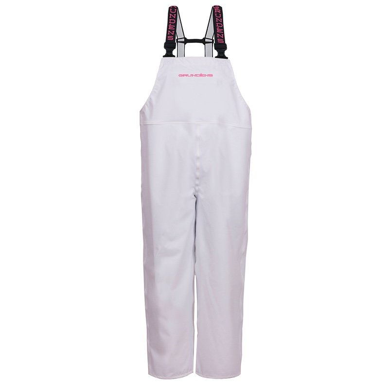 Grundens Women’s Petrus 118 Bibs are available in white in sizes XS-2XL. They are manufactured in Portugal.