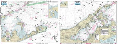 Tip of Long Island, Montuk, including Gardiners and Peconic Bays. A detail fo both forks. All charts include GPS coordinates, wrecks, reefs, shoals, fishing areas, amenities and restrictions.