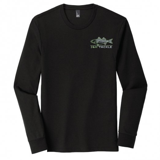 The J&H Tackle Neon Striped Bass Long Sleeve T-Shirt is available in M-3XL in black. Buy one for yourself and one for your fishing buddy!