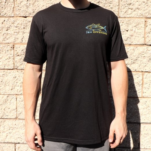 The J&H Tackle Neon Tuna T-Shirt is short sleeve and is available in M-3XL in black.